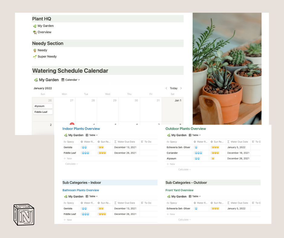 Plant Manager Notion Template - Easy Notion Template - Full of Awesome Overviews - Notion Template